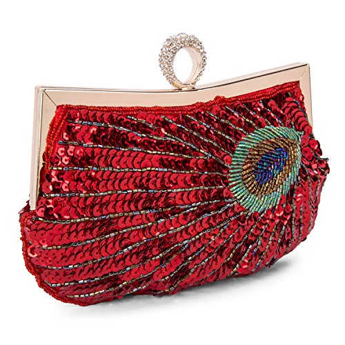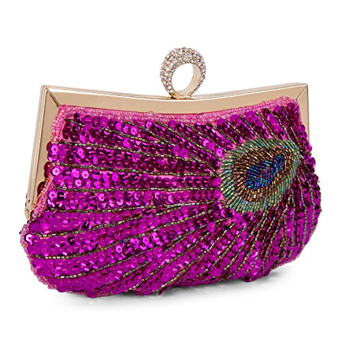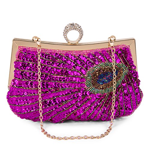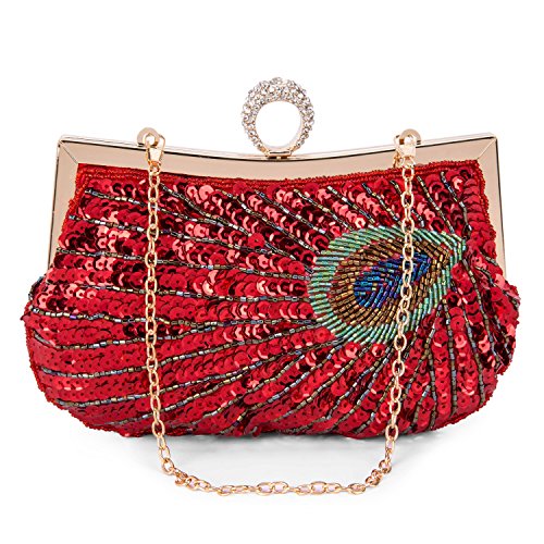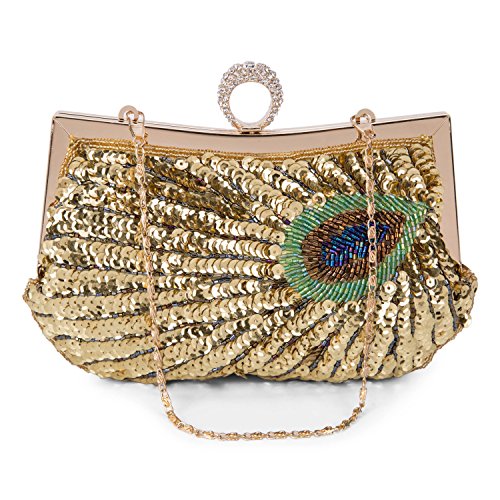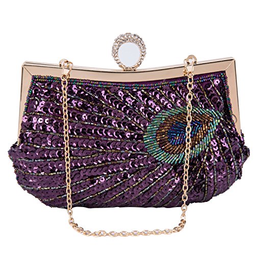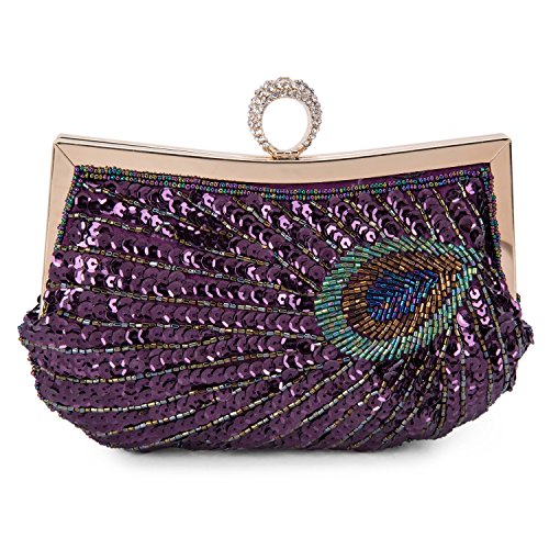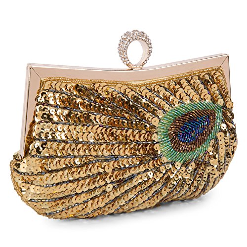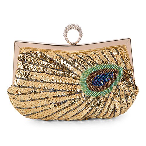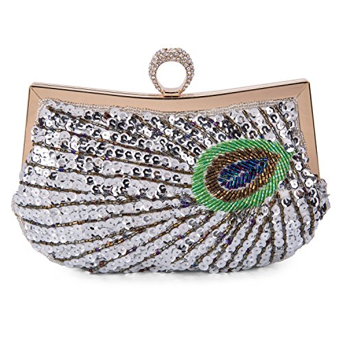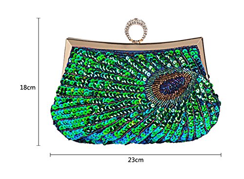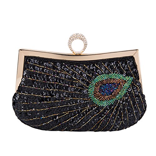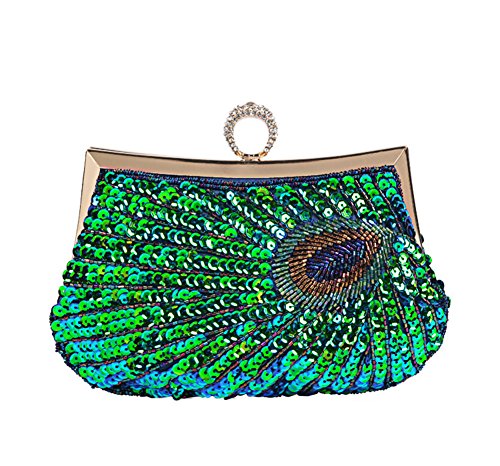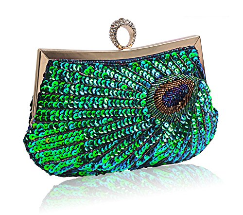 | (Tanpell)/Accessories/Handbags/DIRECT FROM USA/Tanpell Women's Shining Sequins Beaded Rhinestone Peacock Embroidery Clutch Purse |