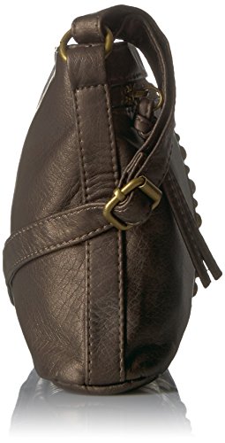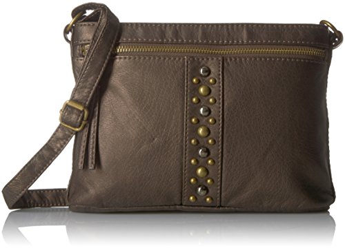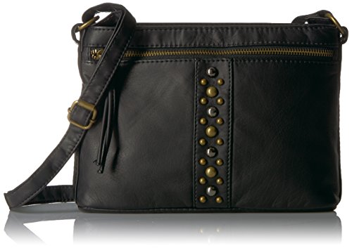 Designed in a soft faux leather this slouchy cross body is adorned fashion studs with spacious interior and numerous interior and exterior pockets to organize all of your essentials