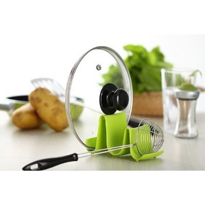 Placing a pot lid or an otlet directly on the kitchen table will make the kitchen table dirty.