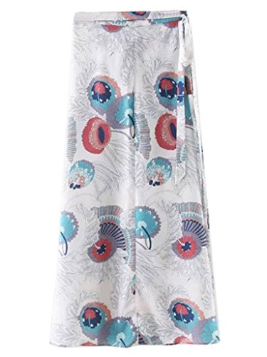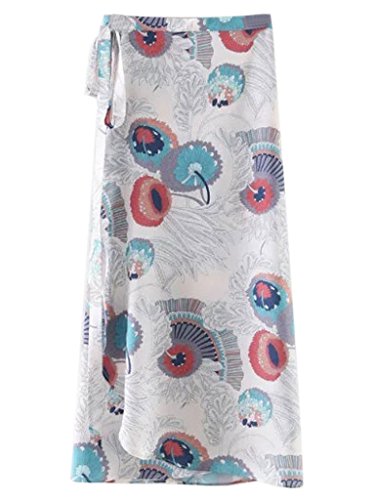 -. Title : PERSUN Women's White Floral Printed Boho High Waist Wrapped A-line Fit Skirt