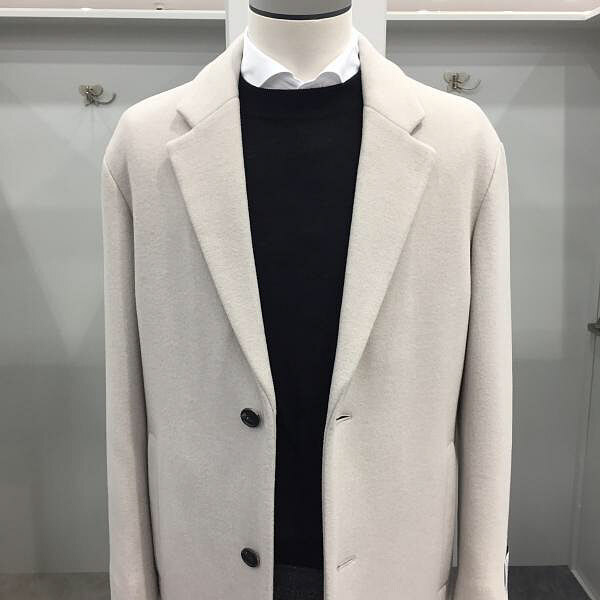 EZIO HOMME 캐시미어터치를 내는 프리미엄울인 하이브리드캐시를 사용한 기모이중지로 보온성과 드레이프성을 모두 갖춘코트입니다 베이직한 컬러감으로 정장 캐주얼에 모두 잘어울리는 코트로 사이즈는 RUO코트 보다는 조금 더 여유있게 나온 세미오버핏입니다 총장(뒷목점 기준) 94cm