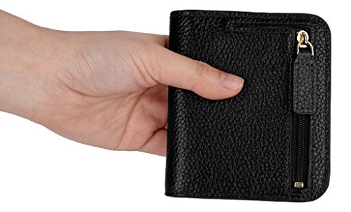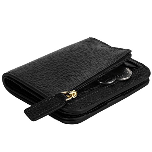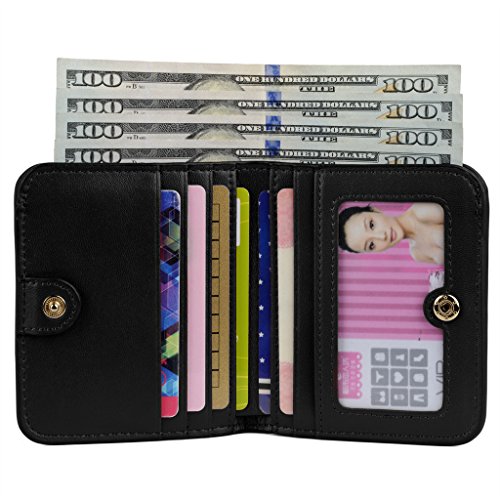 YALUXE Women's Small Compact Bi-fold Leather Pocket Wallet Black