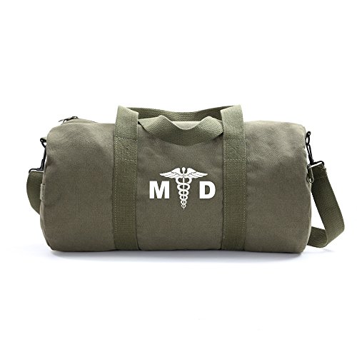 -. Brand : Army Force -. Department : unisex-adult -. Feature : 2 inch Wide Adjustable Shoulder Strap, Comfortable to Carry, Brass hardware / Enormous main compartment that can fit clothes, water bottles, car keys, wallets, and many more. / Twin carry on handles, 2 zipper pull tabs, Stonewashed 100% cotton canvas / Great For Camping, Traveling, Hunting, Backpacking, going to the gym, and many more. / Dimensions: 19" x 9" x 9" (Medium), 24" x 12" x 12" (Large) -. Label : Army Force -. Manufacturer : Army Force -. Model : AFD-414-P -. MPN : AFD-414-P -. PackageQuantity : 1 -. PartNumber : AFD-414-P -. ProductGroup : Apparel -. ProductTypeName : LAGE -. Publisher : Army Force -. Studio : Army Force -. Title : MD Medical Doctor Army Sport Heavyweight Canvas Duffel Bag