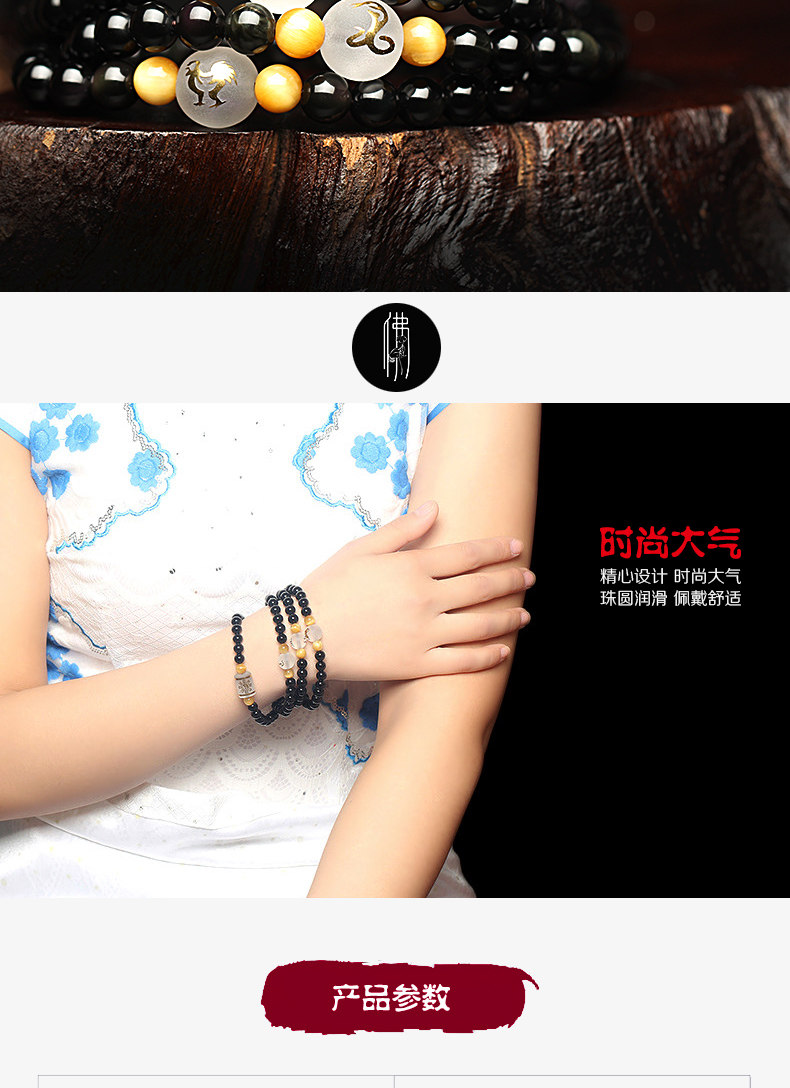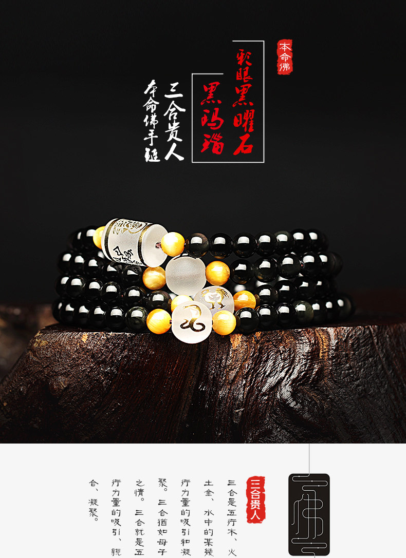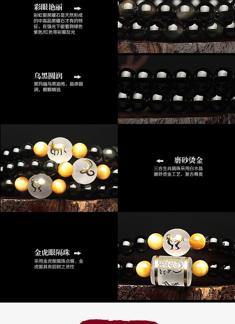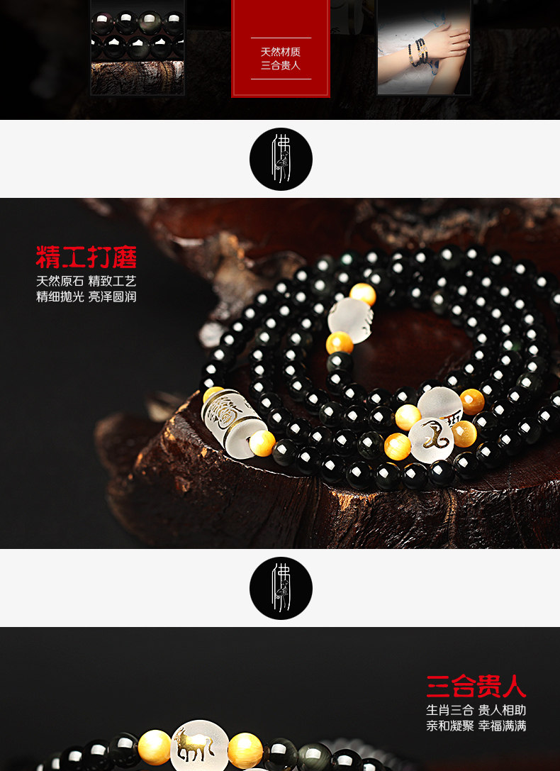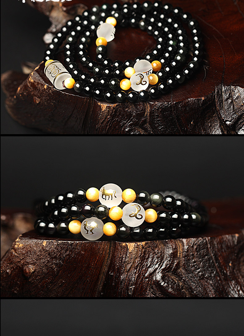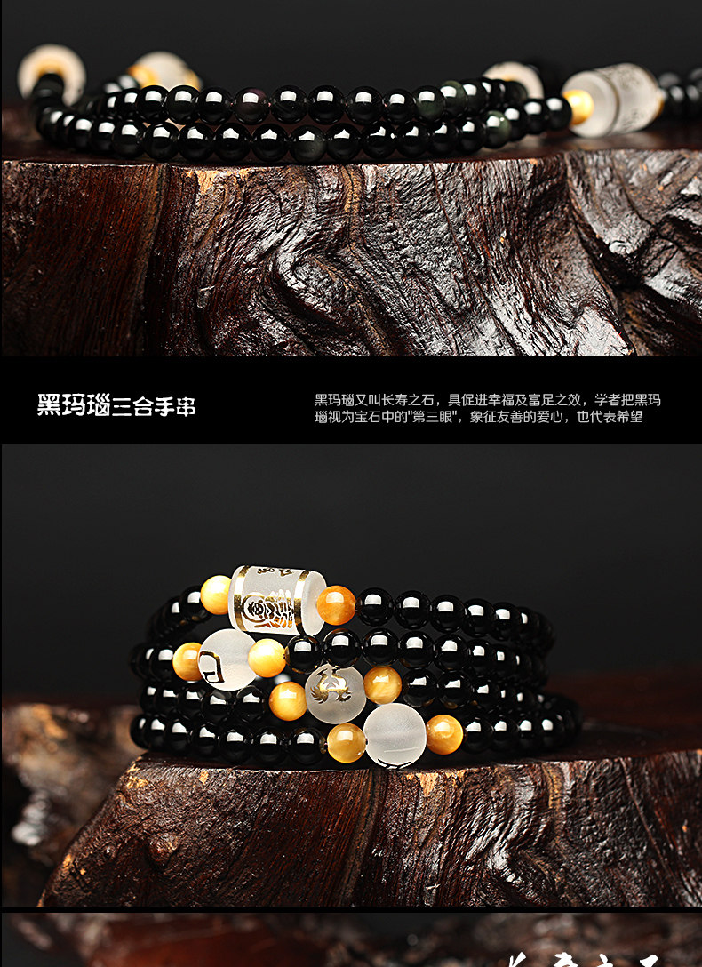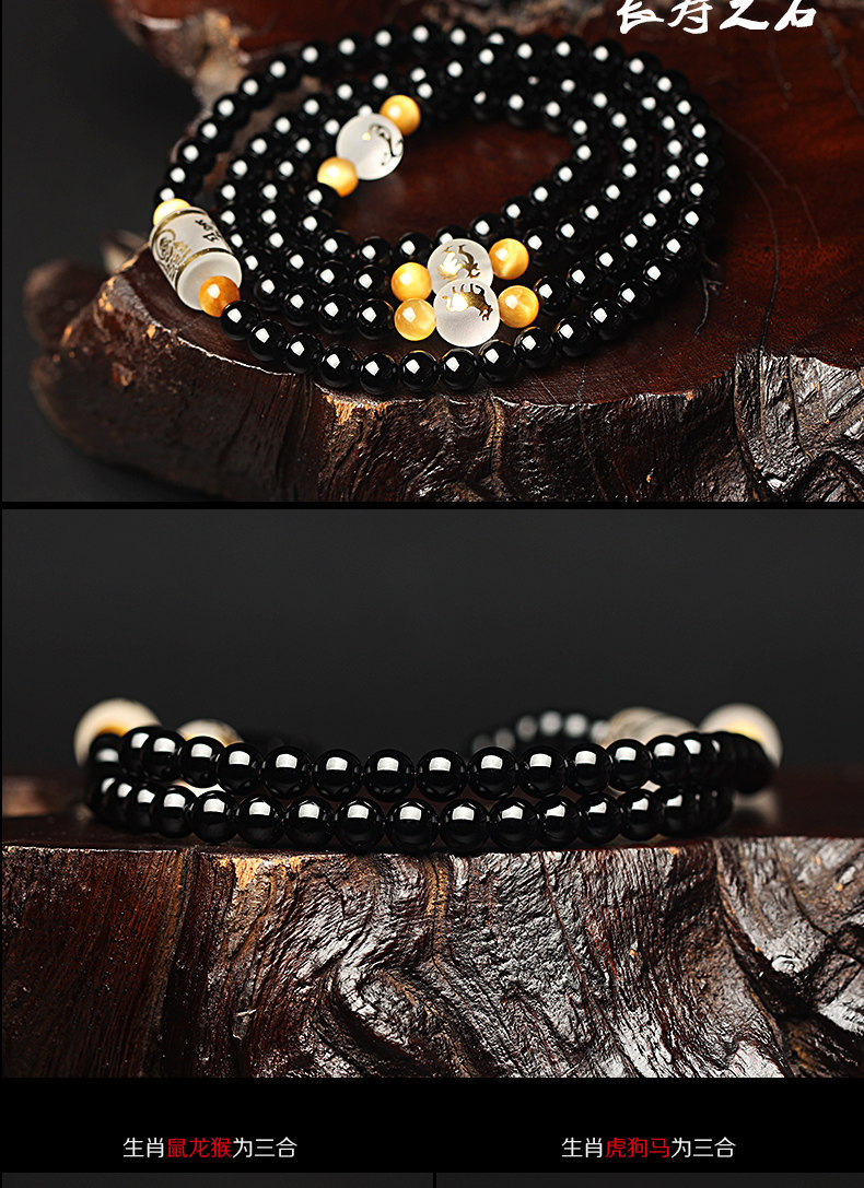 黑玛瑙黑曜石手链佛珠手串多圈男女本命佛守护神生肖三合贵人