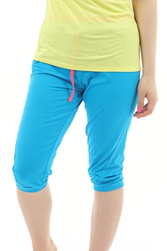 투 루스 jewel 경쾌하 움직이기 쉽 컬러풀 7부 스웨트 크로프드 팬츠 이지 팬츠 바지 요가 웨어 댄스 스포츠 휘트니스 짐 실내복 으로도 레이디스 (블루(핑크))