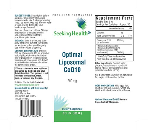 IMPORTANT: Optimal Liposomal CoQ10 is manufactured for and sold exclusively by Seeking Health. We DO NOT recommend purchasing this product from any supplier other than Seeking Health on Amazon.com