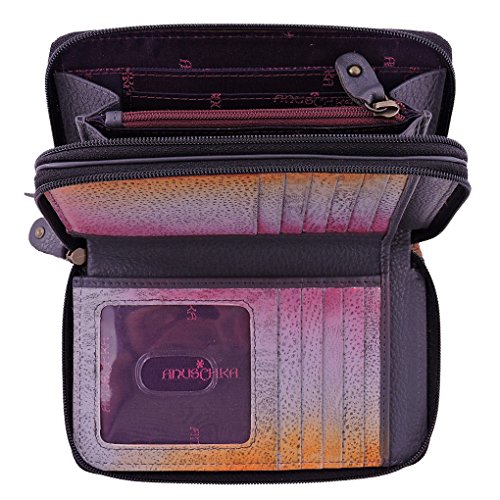 -. Title : Anuschka Twin Zip Around Organizer Wallet Hand Painted Leather