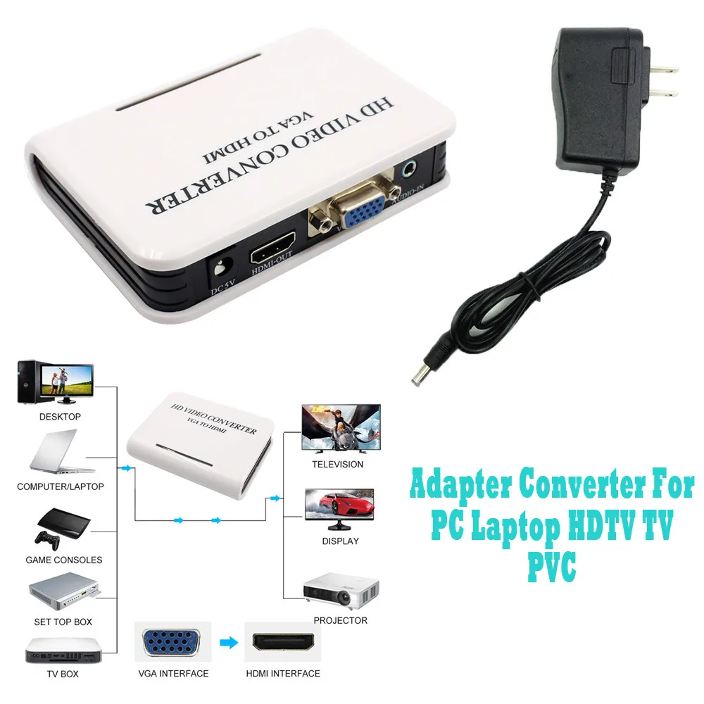 Audio VGA to HDMI 1080P Full HD HDTV Video Converter Adapter Box For Laptop PC for US Adapter standard