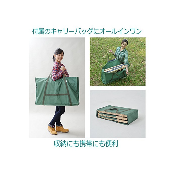 특징:부속 캐리 백에,테이블1대와 우드 라인 라운지《―》가 2대,수납에 옵니다.