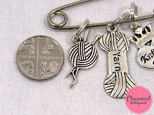 Knitting Diva - 5 Silver Knitting Stitch Markers by Charmed Knitting