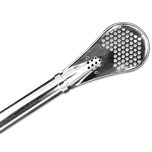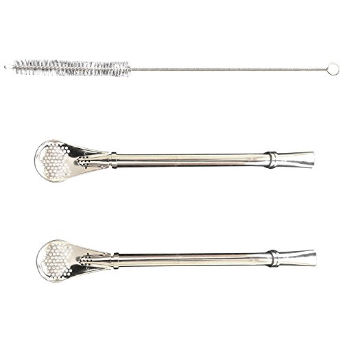 -. Feature : 2 Bombilla Stainless Steel Filtered Drinking Straws For Mate Yerba Loose Leaf Tea. Great for Infused Fruit Cocktails 3 Piece Set / Dependable stainless steel construction resists corrosion and tarnish. Reduces Sediment and Clogging / Great for Tea Lovers who Enjoy Yerba Mate, Pulpy Juices, Loose Leaf Teas or Freshly Filtered French Press Coffee. / 100 % Satisfaction Guarantee Comfortable Angled tip makes positioning the bombilla head easy. / Set of two (2) bombilla's, each measures 6.1 inches, Straw cleaner (1) included. Easy to clean and very durable.