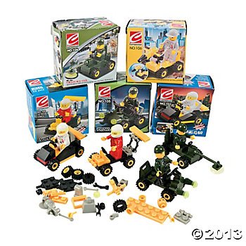 -. Feature : Six mini Construction Block sets - This is NOT L.E.G.O Brand / Individually packaged, assorted vehicles / Great party favors or stocking stuffers / Each kit contains 31 - 35 pcs / Boxes measure 2 3/4" x 2 3/4"