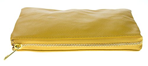Material: Hard quality faux leather, solid-colored fabric lining, gold-tone hardware.