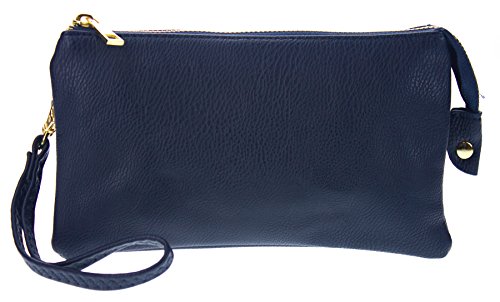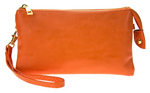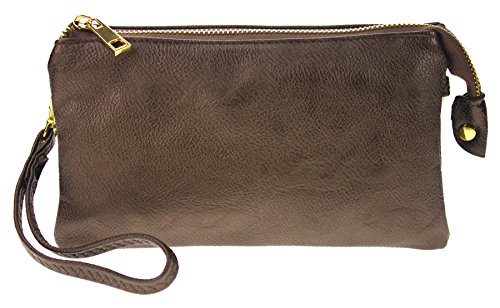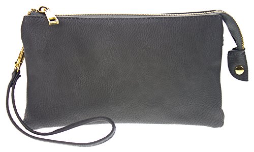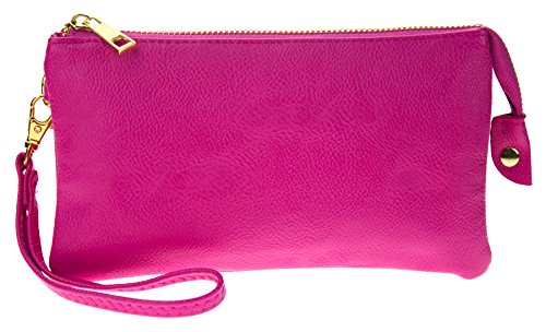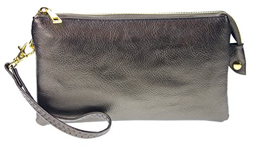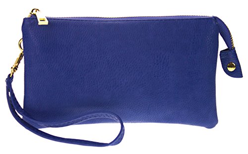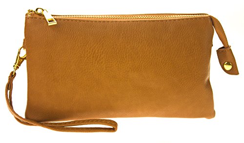This simple but classic looking wristlet features great storage capacity and usablity. Top zipper closure with two major compartments and 1 middle zipper pocket. 2 slip pockets and 6 card holders.