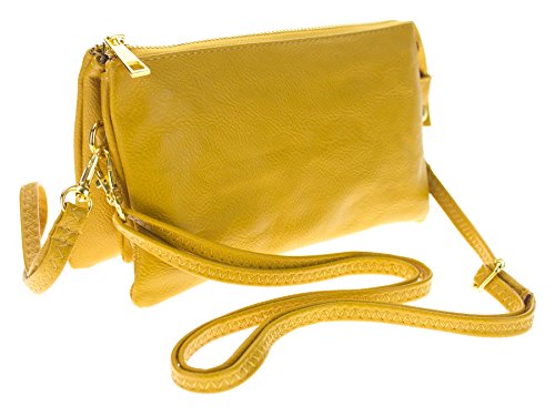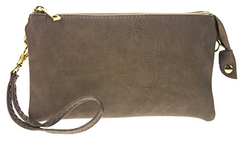 Women's Soft-Feel Leather Zipper Wristlet Crossbody Wallet