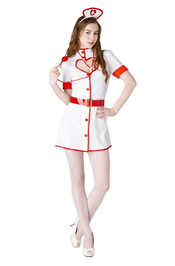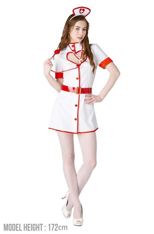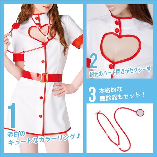 胸元のハートの開きがセクシー&キュートなナースコスチューム?コスチュームのデザインにも映える本格的な聴診器がセットになっています!