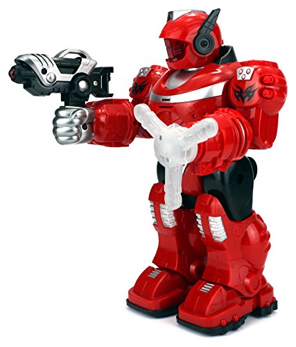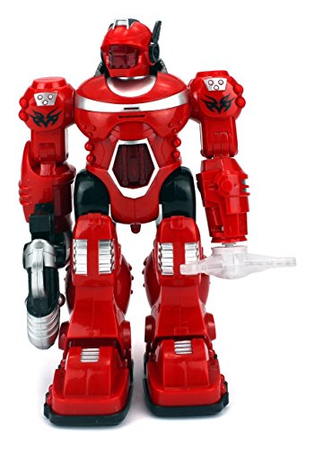 -. Feature : Android General Children's Toy Robot Figure / Light Up Face Plate, Blaster Tip, & Rotating Left Hand, Fighting Simulation Sound Effects / Realistic Walking Action, Adjustable Arms / Requires 3 AA Batteries to run (not included) / Approx. Height: 10"