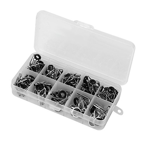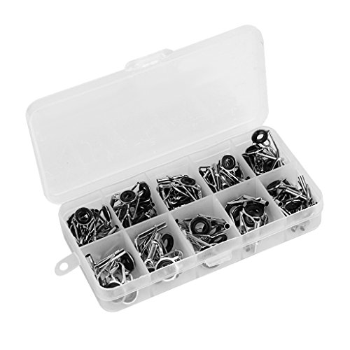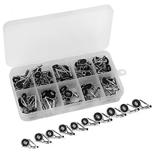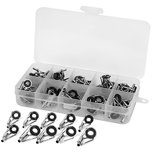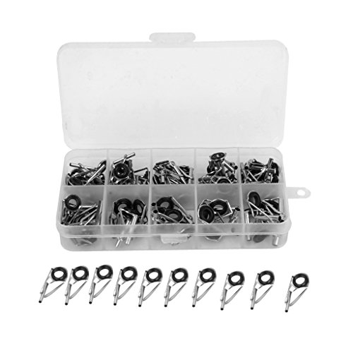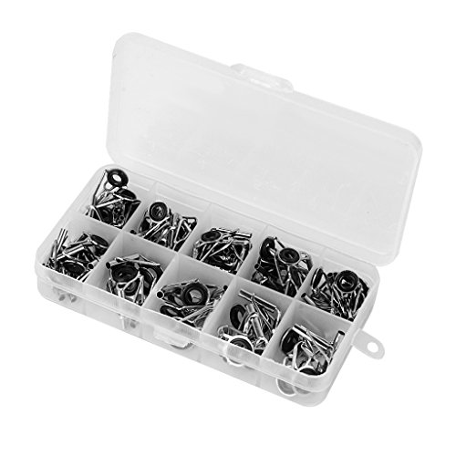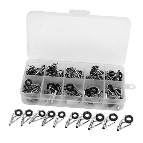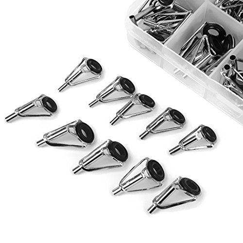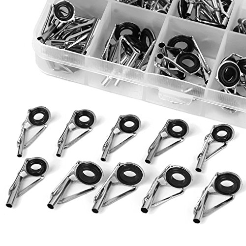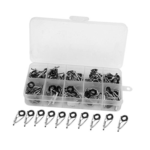 Stainless steel fishing rod guide tips Ideal fishing accessories replacement for fishing lovers The eye ring can protect the fishing line from wear and tear in daily use Quantity: approx. 80pcs in total ( more or less) Dimension-------------------------------Color-------------Material