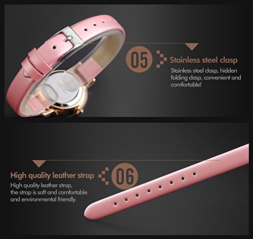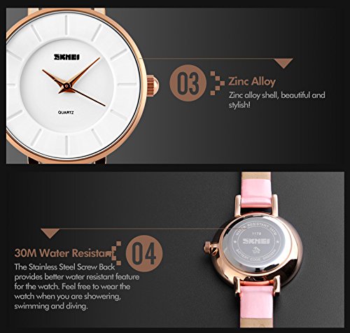 -. Feature : 「素材」:レザー、合金 / 「ケースサイズ」:30mm / 日常生活用防水:3気圧(シャワー、水泳などに対応できません) / 可愛らしいカラーリングで、女性らしい腕元を演出します。 / 年齢層を選ばず、飽きのこないデザインと使いやすさを重視した、本格的レディースウォッチを展開しています。