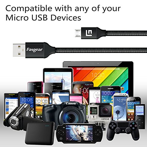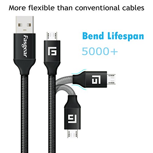 Micro USB Charger, 3 pcs (3.3ft,6ft,10ft) Fasgear Nylon Braided Tangle-Free Fastest charger data cable with Metal Connectors for Android, Samsung galaxy S7/S7 edge, Nexus, Lumia, Sony and more (Black)