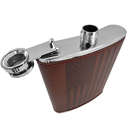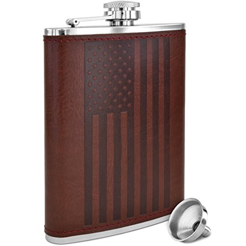 QUALITY: Our leather wrapped - Classic American Flag - Outdoor Adventure Flasks are built strong enough for the outdoors. We manufacture all our flasks out of heavy duty, thick, Premium High Quality Food Grade 18/8 304 Stainless Steel, which makes them perfect for taking with you anywhere. Rust and corrosion resistant, naturally ECO-FRIENDLY, BPA-Free and tested leak proof. The exterior has been wrapped with our beautiful, “faux leather” so no animals were injured in producing this product..:)