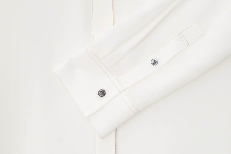 - 배색 스티치가 돋보이는 실크 소재의 블라우스입니다.