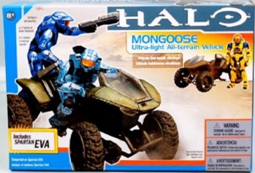 -. Feature : Halo McFarlane Toys Deluxe Vehicle with Action Figure Boxed Set Mongoose with Spartan EVA (yellow P.R.Imary/blue secondary) Figure / Ave Figure has 26 moving parts / Handlebars on mongoose turn, tires spin, rear seat folds down and the foot petals pivot / 2nd figure (sold separately) can fit on the back