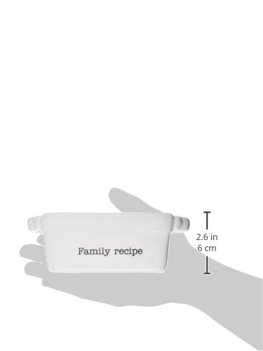 - Ceramic oven-to table mini-loaf dish with chunky handles features debossed "family recipe" sentiment and arrives with silver plate