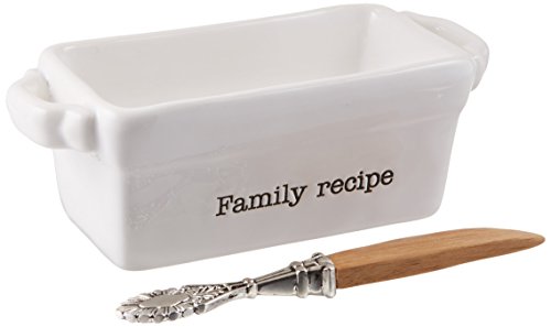 Mud Pie 4801009F "Family Recipe" Mini Loaf Server with Spreader, White