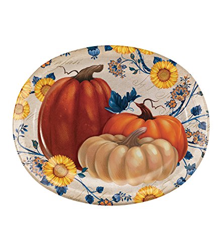 Fall Into Color Pack of Eight 12'' Paper Oval Platters Pumpkins