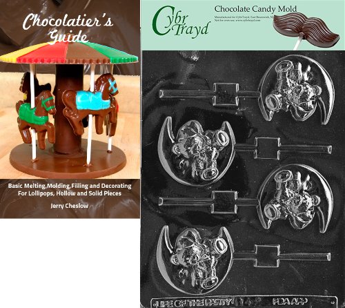 Cybrtrayd "Bear on Half Moon Lolly" Baby Chocolate Candy Mold with Chocolatier's Guide