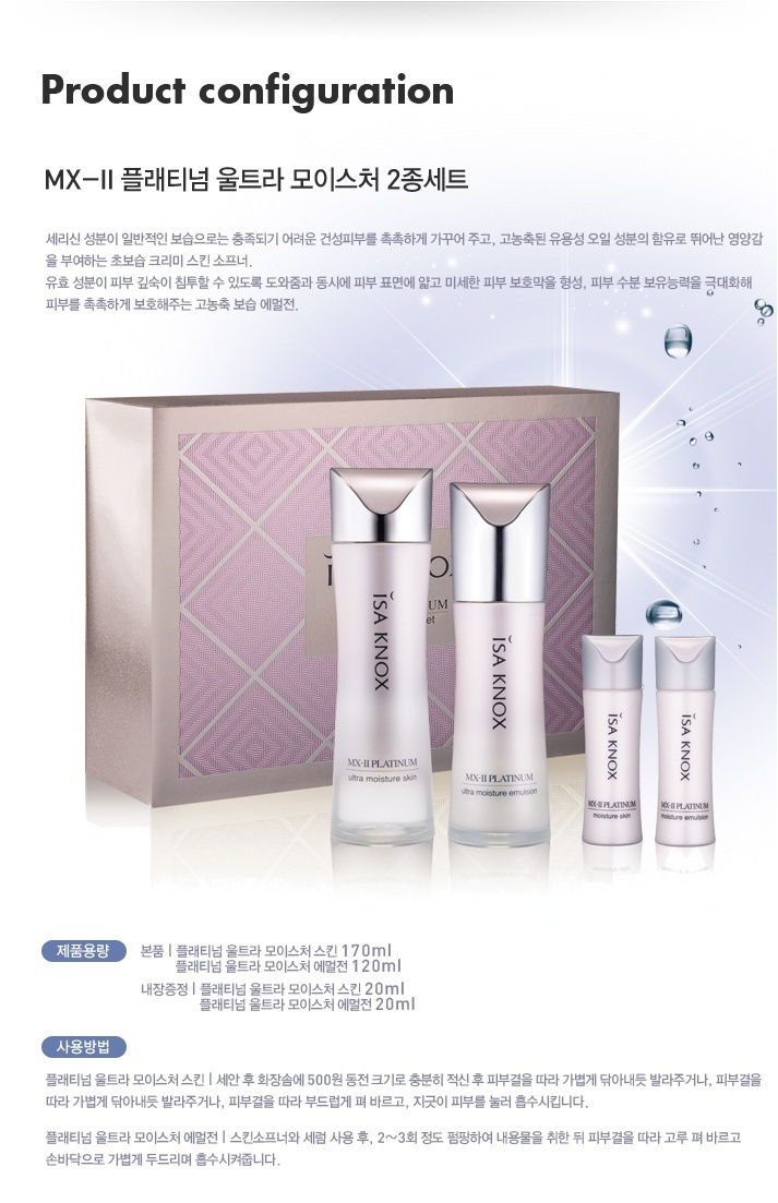 LG Isa Knox MX-2 Platinum Ultra Moisture Skin(170ml)&Emulsion(120ml) Set +Gift