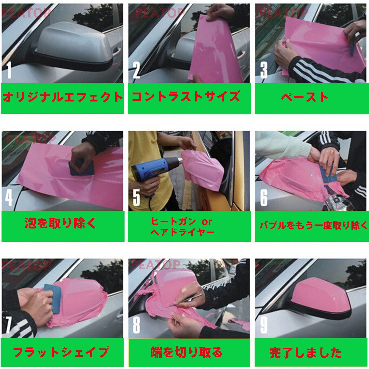 * If you warm it with a heat gun etc., it becomes easier to stick, but if it stretches too much it will also cause wrinkles and shrinkage.