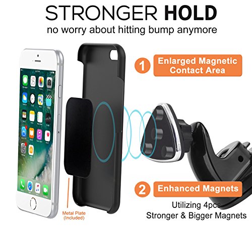 2017 All New Design. Enlarged Magnetic Contact Area, Enhanced 4 Bigger Magnets for Large Smartphones, no worry about hitting bump anymore.