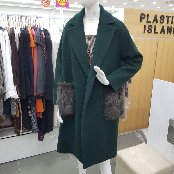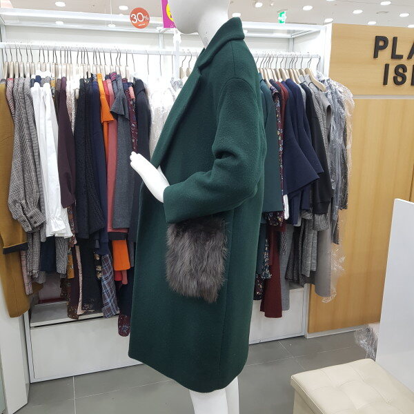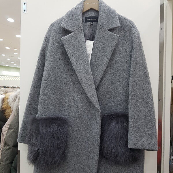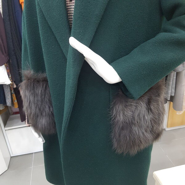 포켓 퍼 포인트 루즈핏 울코트예요~주머니쪽에 퍼가달려있어서 기여우면서 따뜻해보이는 코트예요
