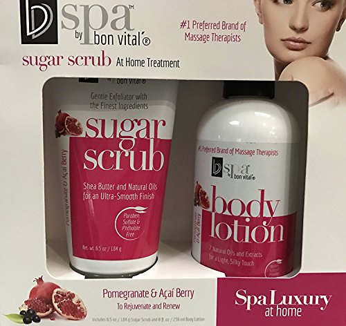 - Set includes: Sugar Scrub 6.5 oz. Pomegranate & Acai Berry and Body Lotion 8 fl. oz.