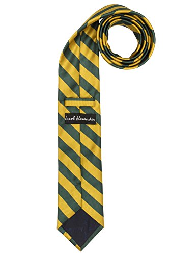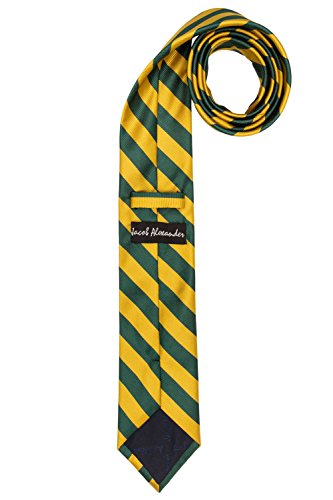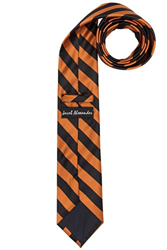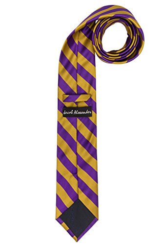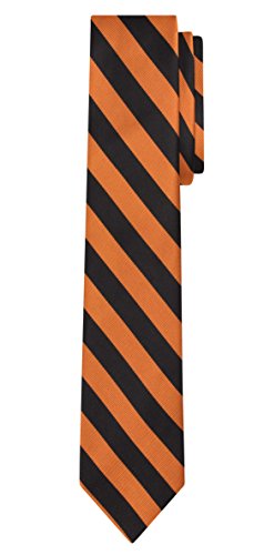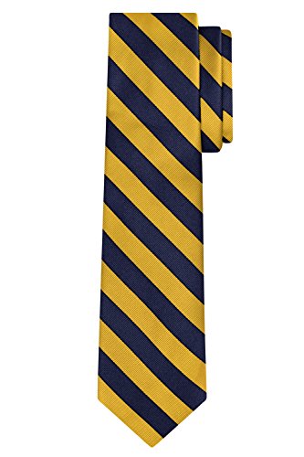 TIE: HIGH QUALITY PREMIUM Preppy School Stripe Tie with woven repp fabric for strong construction. Slim tie measures 2.75" x 58", the Regular tie measures 3.25" x 58", and the Extra Long tie measures 3.25" x 63". Wear these dual color bar stripes to pay homage to your school or favorite color combo. Stripes measure a well balance 3/4" wide.