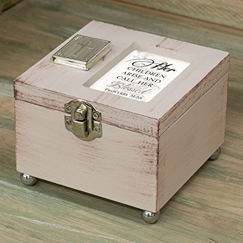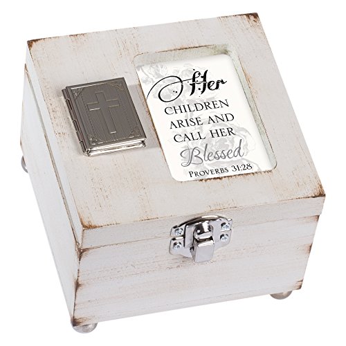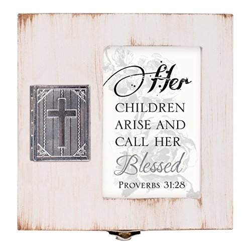 Her Children Call her Blessed 4.5 x 4.5 inch Distressed Coral Wood Locket Jewelry Keepsake Box