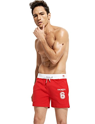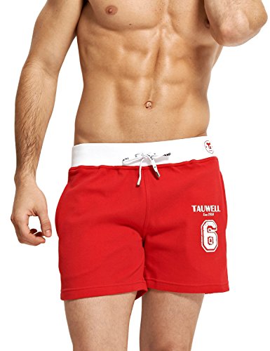 TAUWELL Mens Low Rise Sports Soft Running Training Short Pants (Large/34-36Inch, 60634 Red)
