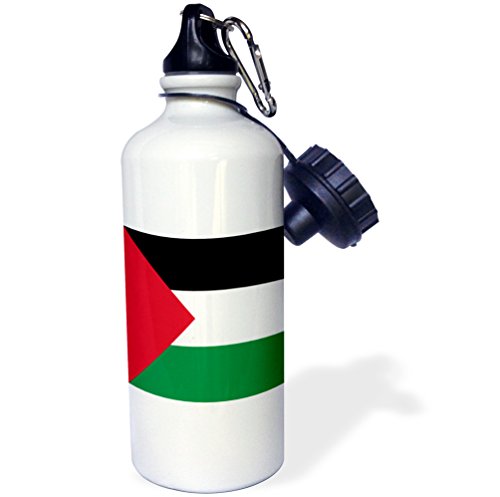 3dRose wb_158407_1 "Flag of Palestine-Palestinian black red white green stripes triangle Arab world country West Bank" Sports Water Bottle, 21 oz, White