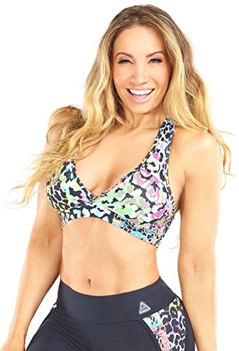 • Women's exercise top racerback with colorful leopard prints prints