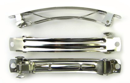 Nickle Plated with removable tension bar. Perfect for dog bows. WARNING: CHOKING HAZARD - Small parts. Not for children under 3 yrs