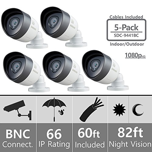 (Set of 5) SDC-9441BC Samsung 1080P Bullet Cameras with 60ft Cables Supported on SDH-C75100, SDH-C75080, and SDH-C74040