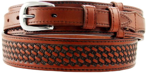 -. Binding : Apparel -. Brand : Belts.com -. Department : mens -. Feature : This belts size is measured from where the pin touckes at the tip of the buckle to the center hole at the tip end. / Flexible 3/4" billet straps sewn onto the wider 1-3/8" cinch strap / Fully lined with basketweave accents to enhance any Gunslinger's attire / Buckle removable and snap system allows interchangebility of any buckle up to 3/4" / 100% Genuine Leather. PLEASE ORDER ONE SIZE LARGE THAN YOUR PANTS SIZE. -. ProductGroup : Apparel -. ProductTypeName : ACCESSORY -. Title : James Western Basketweave Leather Embossed Ranger Belts for Men