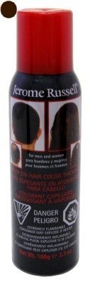 -. Binding : Misc. -. Brand : Jerome Russell -. Color : Dark Brown -. Feature : Spray on hair color thickener / Temporary hair color that will not damage hair / Solution for thinning hair, and root touch up! -. Label : Jerome Russell -. Manufacturer : Jerome Russell -. ProductGroup : Beauty -. ProductTypeName : BEAUTY -. Publisher : Jerome Russell -. Studio : Jerome Russell -. Title : [JEROME RUSSELL] SPRAY ON TEMPORARY HAIR COLOR THICKENER #DARK BROWN 3.5OZ