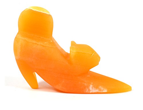 - Beautiful stone stretching cat carved from orange onyx aragonite.