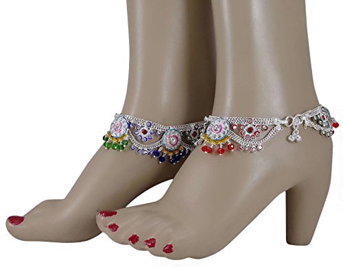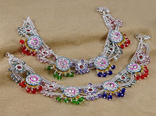 -. Binding : Jewelry -. Brand : Banithani -. Color : Silver -. Department : womens -. Feature : Add an edge to your traditional look by wearing this pair of anklets for women. This pair of lustrous anklets will complement all your dresses. Made from Alloy this pair is safe on the skin. / Sale For: 1 Pair Anklet; Metal: Alloy / Size: 10.5" Inches Long and 1.5" Inches Wide; Weight: 116 Gms / SKU: SA1244A; Made in India / Discover more Beautiful Jewelry from our collection, click on the link "Banithani" above the title. -. Label : Banithani -. Manufacturer : Banithani -. Model : SA1244A -. MPN : SA1244A -. PartNumber : SA1244A -. ProductGroup : Jewelry -. ProductTypeName : FASHIONNECKLACEBRACELETANKLET -. Publisher : Banithani -. Studio : Banithani -. Title : Banithani Indian Bridal Designer Payal Silvertone Screw Lock Anklet Set Wedding Jewelry