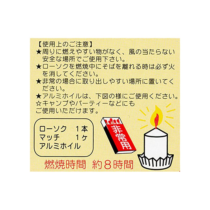 원본상품명: 非常用 約8時間燃? ロ?ソク マッチ付 非常用ロ?ソク