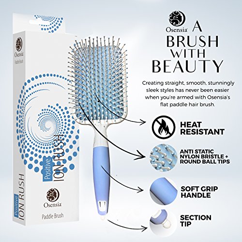 - •A BRUSH WITH BEAUTY – Creating straight, smooth, stunningly sleek styles has never been easier when you’re armed with Osensia’s flat paddle hair brush. Heat resistant, antistatic nylon bristles glide through all hair types, while round ball tips gently massage your scalp. But that’s not all! The ergonomic, soft grip handle fits comfortably in your hand, and the section pin tip gives you even more drying and styling versatility!