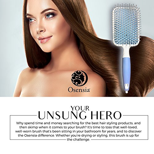 - •SOMETHING EXTRA – This isn’t your typical paddle hair brush. Osensia infuses ionic minerals into each and every bristle to promote healthy hair and natural shine for truly radiant strands. Don’t just brush away tangles, brush on brilliant hair.